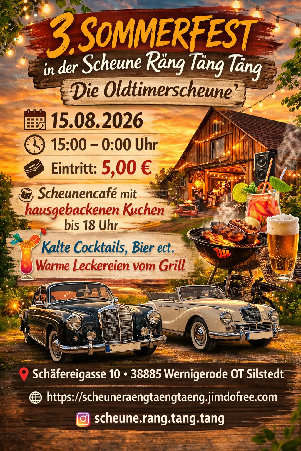 Wir laden euch wieder herzlich zu unserem Sommerfest ein. Freut euch auf leckeres Essen sowie Cocktails oder hausgebackenen Kuchen im Scheuencafe. Der Eintritt kostet 5,00€.